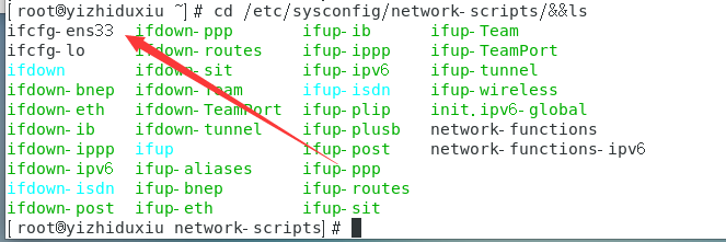 1 | cd /etc/sysconfig/network-scripts/&&ls |