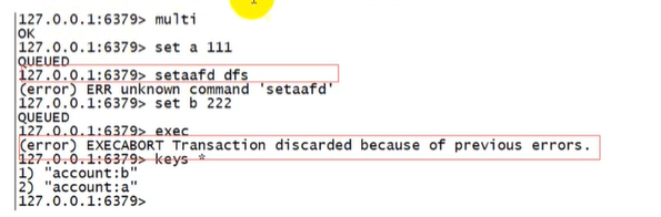 队列中的某个命令出现了报告错误,执行时整个的所有队列都会被取消。