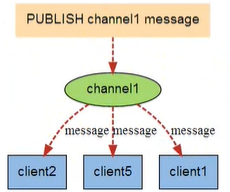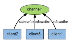 当有新消息通过PUBLISH命令发送给频道channel1 时,这个消息就会被发送始订阅它的三个客户端: