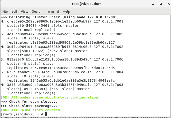 ./src/redis-cli --cluster create 127.0.0.1:7001 127.0.0.1:7002 127.0.0.1:7003 127.0.0.1:7004 127.0.0.1:7005 127.0.0.1:7006 --cluster-replicas 1 -a yizhiduxiu