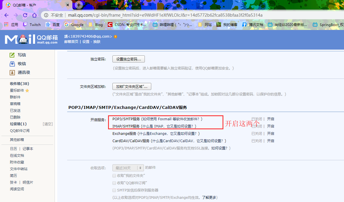 1 2 3 spring.mail.username=1839743406@qq.com spring.mail.password=授权码 spring.mail.hot=smtp.qq.com