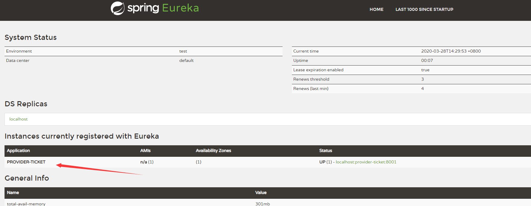 1 2 3 4 5 6 7 8 9 10 11 12 13 14 server: port: 8001 spring: application: name: provider-ticket eureka: instance: prefer-ip-address: true client: service-url: defaultZone: http://localhost:8761/eureka/