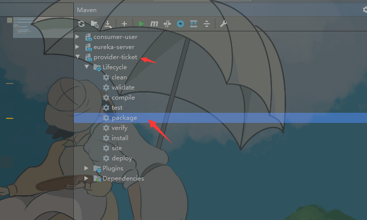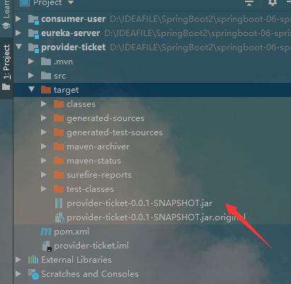 运行 eureka-server,再运行刚刚那两个打好包的 provider-ticket,再运行consumer-user