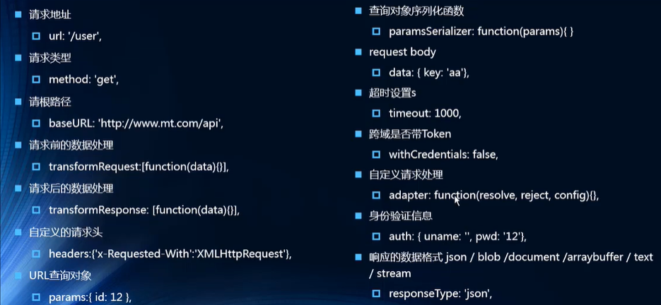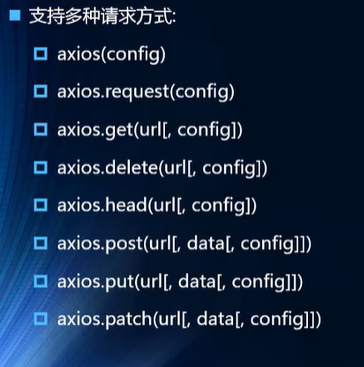 | axios({ url: 'http://123.207.32.32:8000/home/multidata', params: { type: 'aaa', name: 'bbb' }, method: 'get' }).then(res => { console.log(res); })
